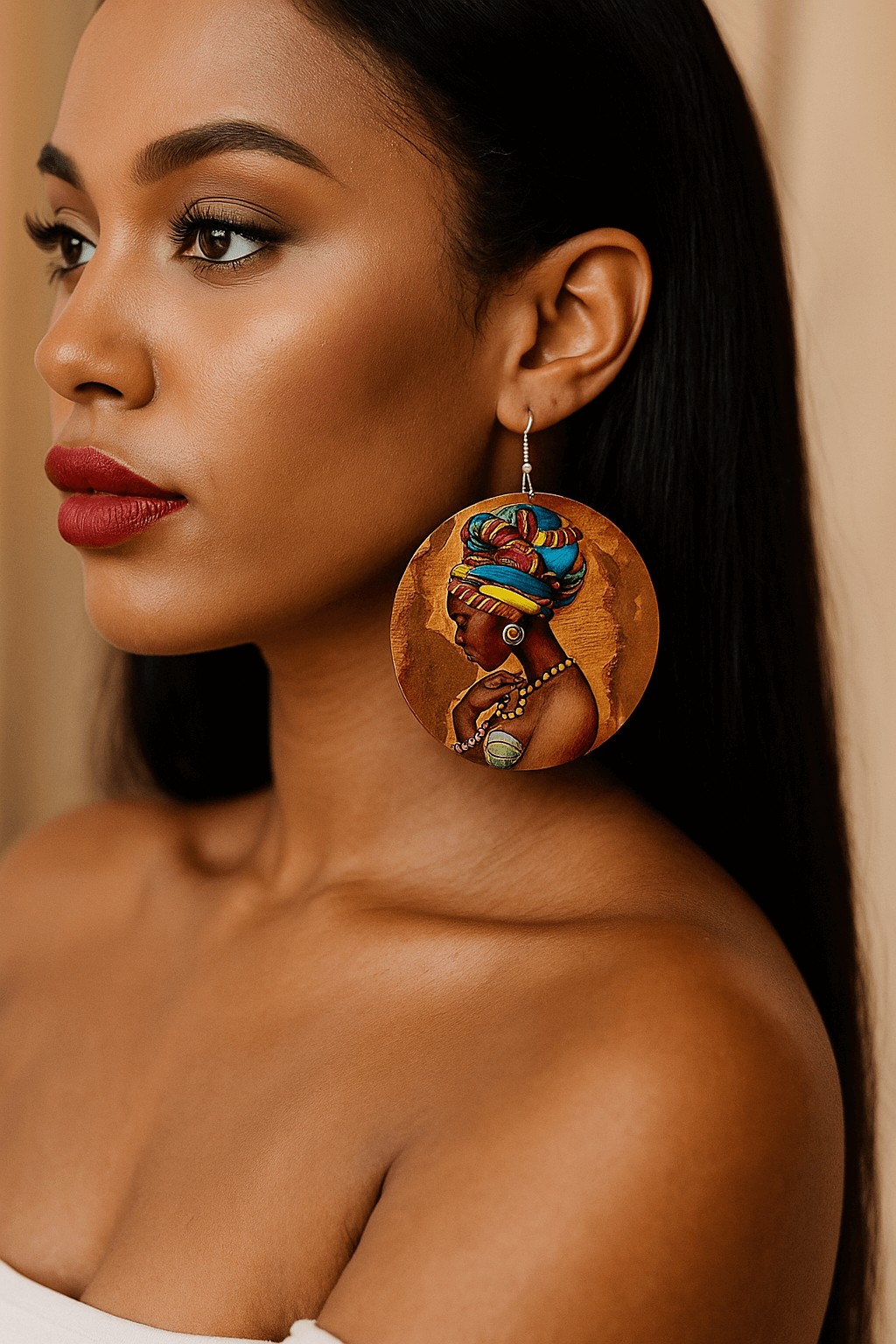 Nos boucles d’oreilles africaines motif tête se distinguent par leur design unique représentant des silhouettes féminines africaines. Ces bijoux ethniques femme style afro sont parfaits pour affirmer votre identité culturelle avec fierté et élégance.