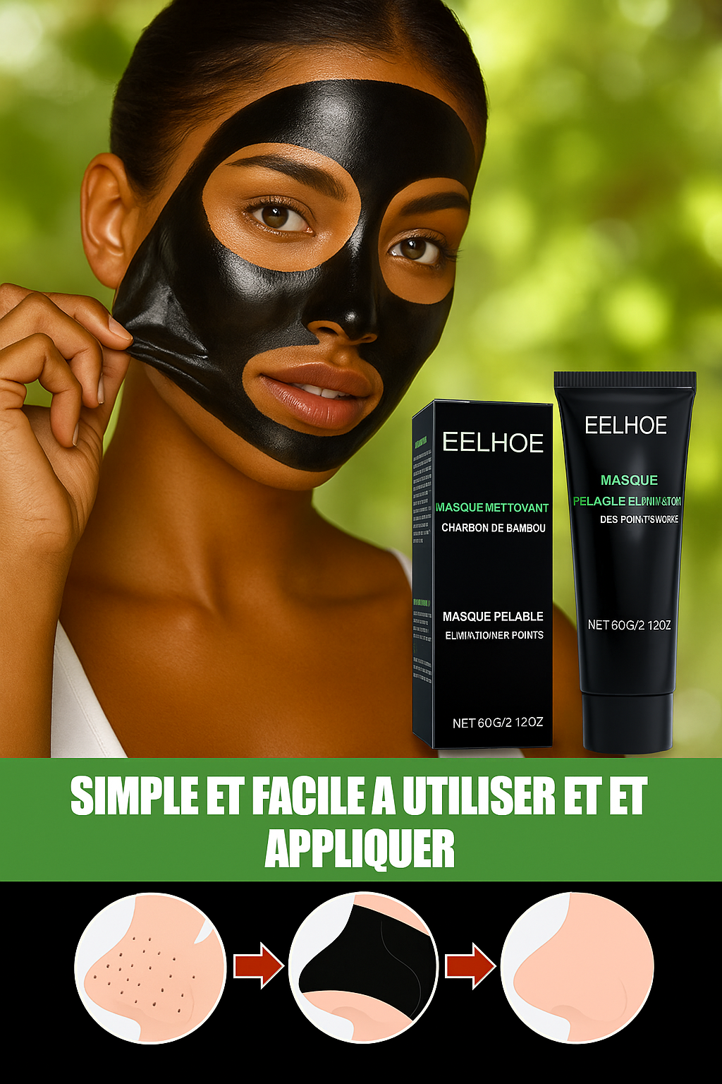 Masque purifiant au charbon de bambou EELHOE pour un nettoyage en profondeur des pores.