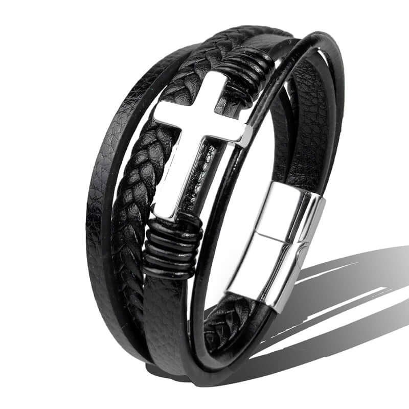 Portez ce bracelet croix en acier inoxydable cuir unisexe au quotidien ou lors d’occasions spéciales. Un accessoire intemporel qui combine foi, mode et qualité exceptionnelle.